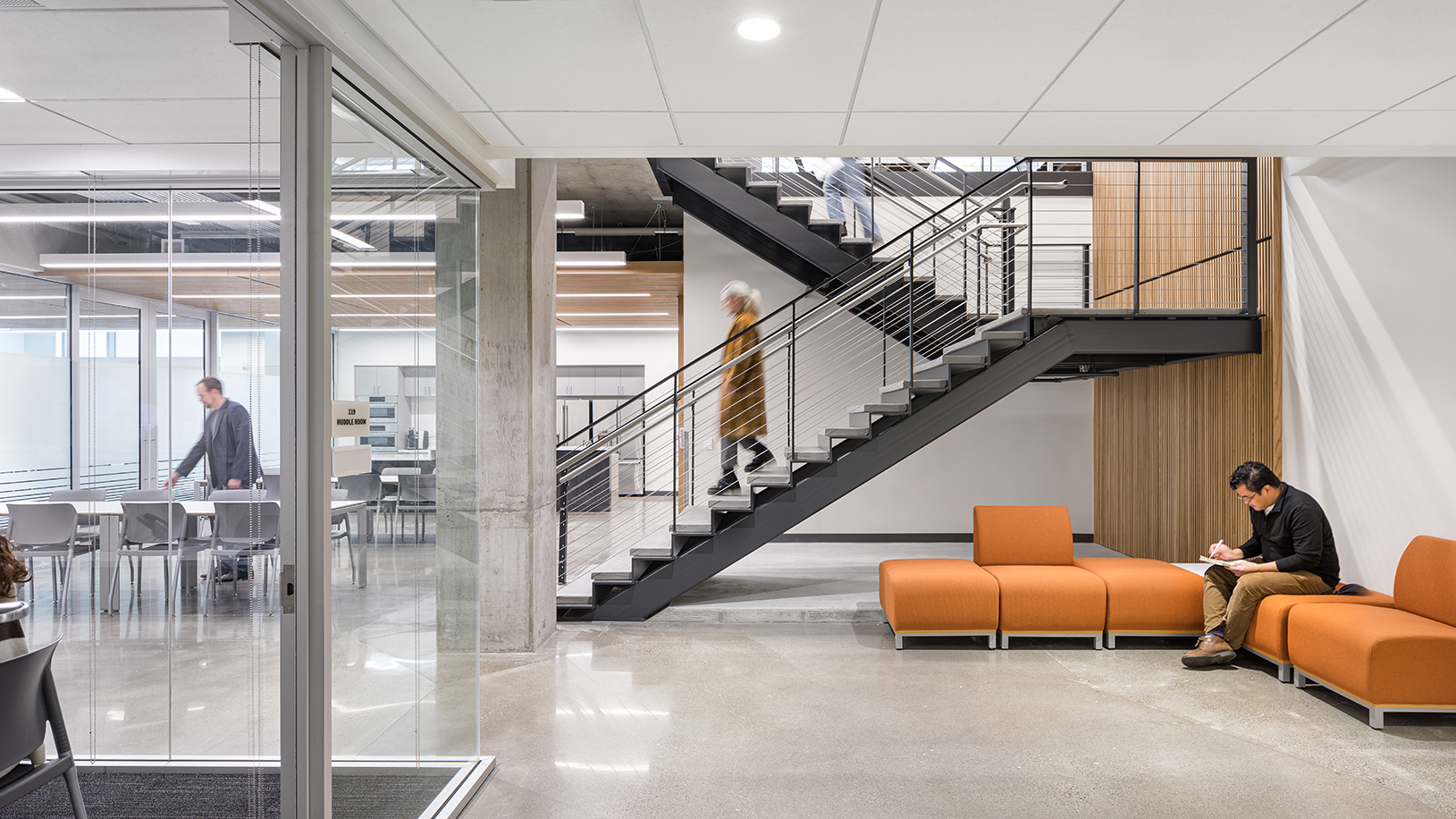 Opened in 2020, this 17,000 sf build out/tenant improvement in Portland’s Lloyd District was specifically designed to serve TriMet’s safety and security personnel in a new facility. To support the transit agency’s goal of creating a central hub for staff to recharge and connect, the design team collaborated to create a flexible, warm, and safe work environment. The bright interior also includes transformable public spaces to support the agency’s mission of engaging the community.