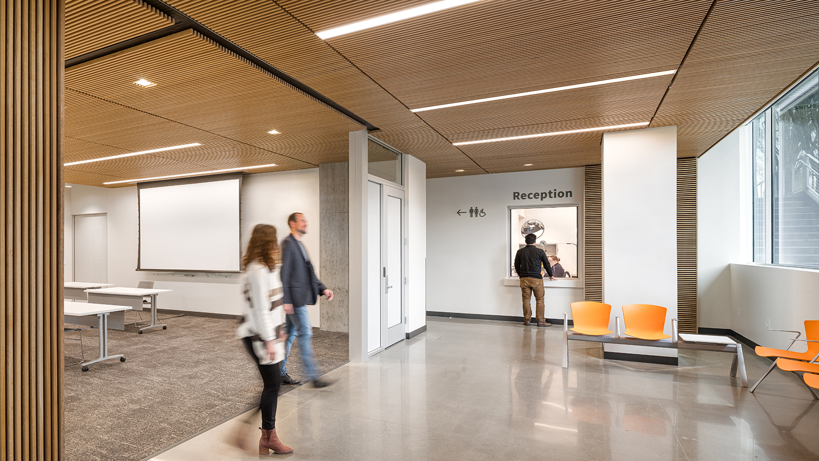 Knot Studio’s interior experiential graphic design celebrates simple details and complementary finishes while easing building navigation for staff and visitors. The bright interior makes way for a sign system that harmonizes with the warm and neutral architectural details. With a subtle design and timeless finishes, Knot Studio’s wayfinding, operational, and security sign program enhances visitor flow and offers a seamless, elegant accent to the multi-purpose space.
